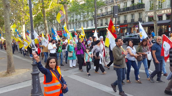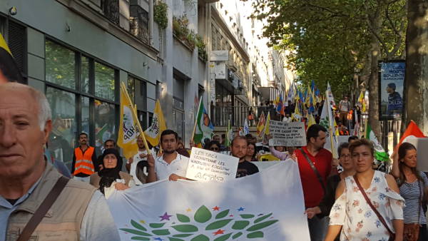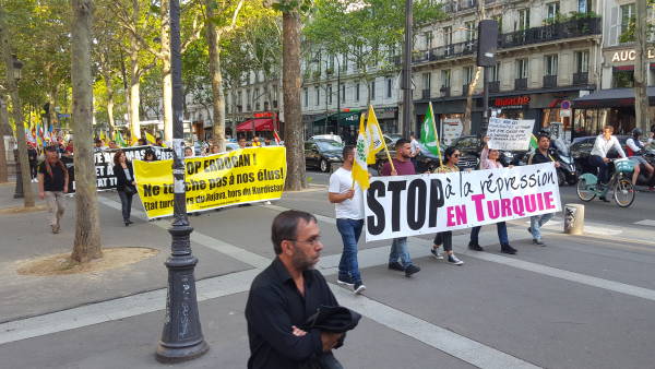 PARÎS: Li paytexta Fransa Parîsê Kurdistanî û dostên wan li dijî desteserkirina şaredariyan meş û mîtîngek pêk anîn. Meşê bi banga CDK-F û TJK-F li meydana Republique dest pê kir û nûnerên saziyên ACTIT, SKB, ADHK-Parîsê piştgiriya çalakiyê kirin. Çalakgeran bang li dewleta Fransayê kirin ku li pêşberî operasyonên qirkirina siyasî û desteserkirina îradeya gelê Kurd bêdeng nemîne. Girseya gel piştre bi qîrîna dirûşma "Dewleta faşîst ji Kurdistanê bicehime" heta metroya Strasbourgê ve meşiya. Çalakiya şermezarkirinê bi mîtîngê dom kir. Qisekeran bal kişandin ser girîngiya têkoşîna hevpar a ji bo hilweşandina faşîzmê.