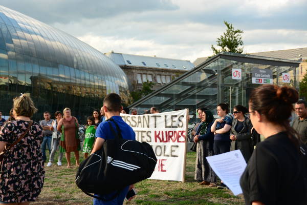 STRABOÛRG: Kurdistanî tevî dostên xwe li bajarê Strasboûrgê li hev kom bûn û desteserkirina şaredariyan şermezar kirin. Nûnerê HDP'ê yê li Konseya Ewropayê Fayîk Yagizay di çalakiyê de axivî û anî ziman, AKP'ê têkçûna xwe ya di hilbijartinên xwecihî de hezm nekiriye, lewma bersiva xwe jî pêkanînên faşîzane.