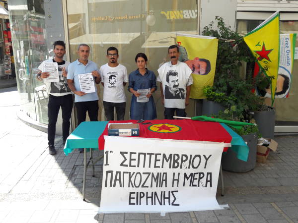 Li bajarê Levkoşa yê Qibrisê bi boneya Roja Aştiyê ya Cîhanê Kurdistaniyan li Qada Lefkoşa Ledras Palasê stand danîn. Di standê de belavokên ku daxwaza azadiya Ocalan dike hatin belavkirin.