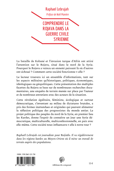 Rojnamevanê Fransayî Raphael Lebrûjah li ser Rojava û projeya Rojava pirtûkeke nivîsî. Pirtûka bi navê "Di şerê navxweyî yê Sûriyeyê de fêhmkirina Rojava" beriya niha bi demeke kin ji aliyê weşanxaneya Croqûantê ve hate weşandin.