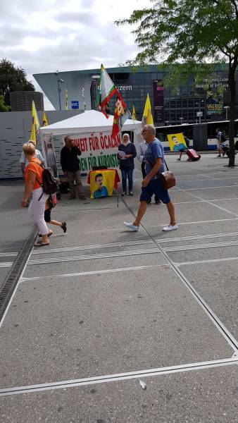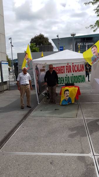 Li bajarê Lûzerê jî li pêşiya stasyona trenê ya li navenda bajêr saet 12:00’an kon hate vedan û pankarta ‘Ji Ocalan re azadî, ji Kurdistan re statû’ hate vekirin. Di çalakiyê de Hevserokê NCKD-Lûzernê Kadîr Ozkan axivî û got: ‘Heta agahî û azadiya Rêber Apo bidest bixin em ê çalakiyên xwe bidomînin.