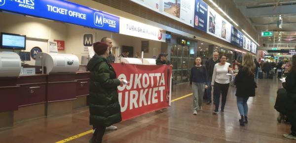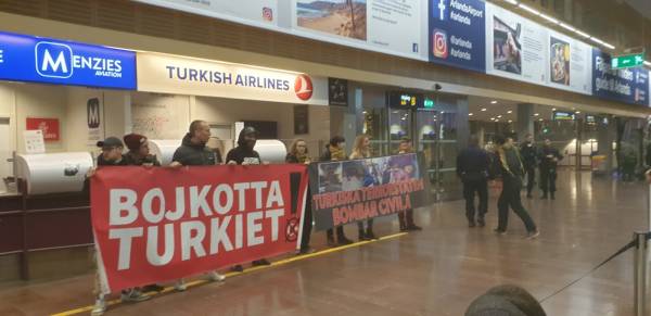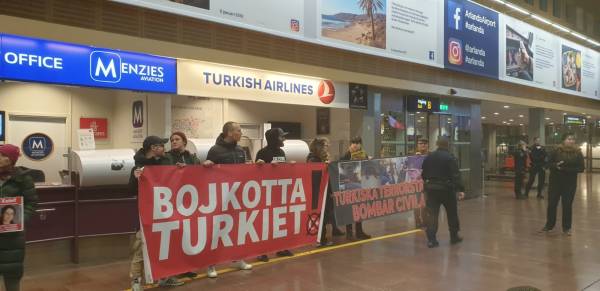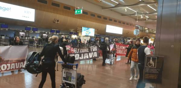 Kurdistaniyan tevî dostên xwe ji bo şermezarkirina êrişên dagirkeriyê yên dewleta Tirk li Balafirgeha Arlanda ya Stockholmê çalakiya bêîteatiya sivîl kirin.