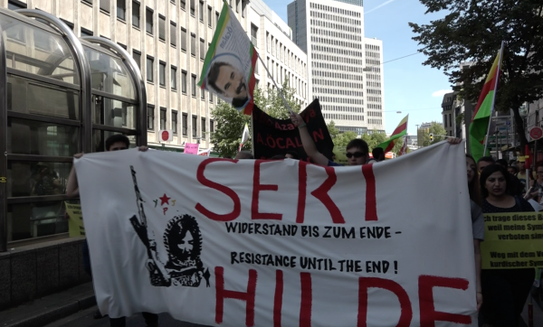 Di meşê de dîmenên renga reng derketin holê li dijî polîsan dirûşim hatin qîrikirin. Di meşêa qedexeya ala PKK’ê jî hate şermezarkirin ji pêşiya HBF Dusseldorfê destpê kir. Piştî meşa heta pêşiya avhiya Parlemetoya NRW’ê dom kir de mîtîngek hate lidarxistin.