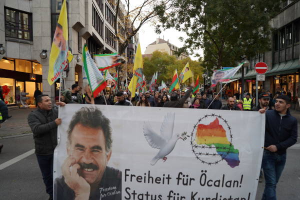 Bi heman armancê li bajarê Stûttgartê jî li ser banga Navenda Civaka Kurd a Demokratîk bi sedan kes hatin ba hev li Laûtenschlagerstrasseyê meşek lidar xistin. Di meşê de posterên Ocalan hatin hildan û dirûşmên dilsoziya bi Ocalan û qedexeya li ser PKK’ê şermezar kirin.