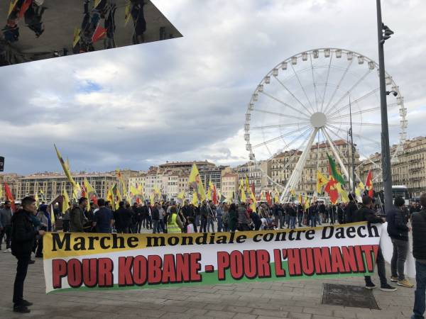 Kurdên li Marsîlyayê û derdora wê dijîn, ji bo protestokirina êrîşên dewleta Tirk ên li dijî Rojava û Bakurê Sûriyeyê û ji bo azadiya Rêberê Gelê Kurd Abdullah Ocalan daketin qadan.