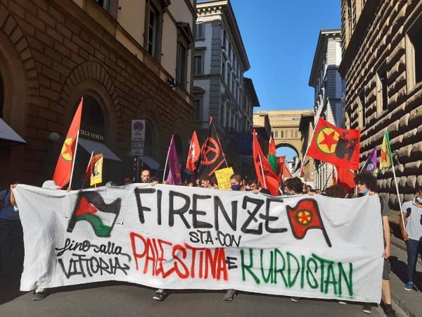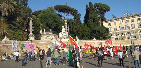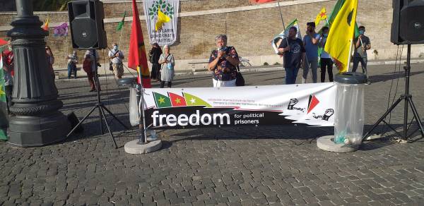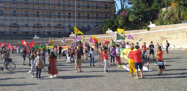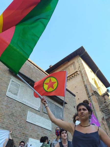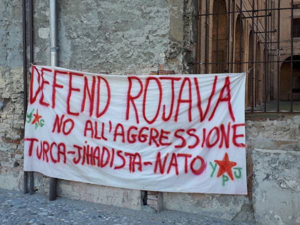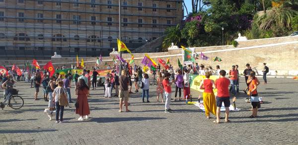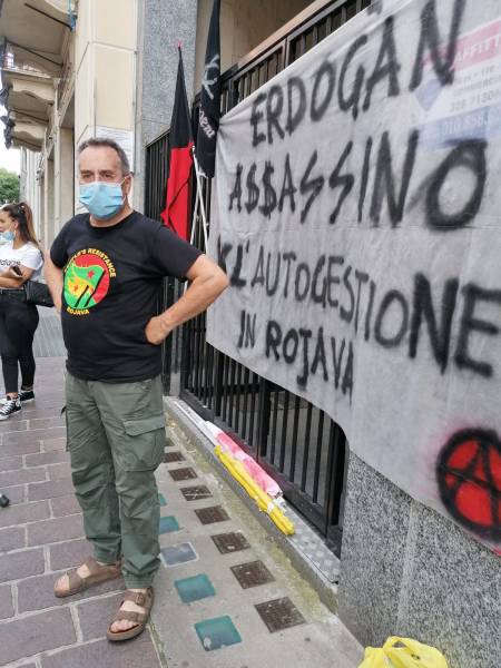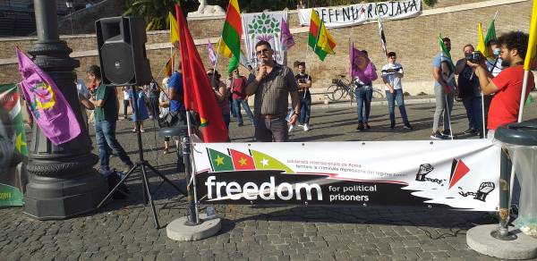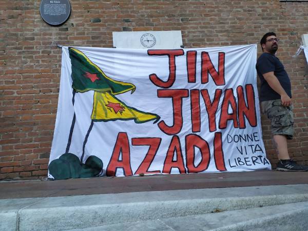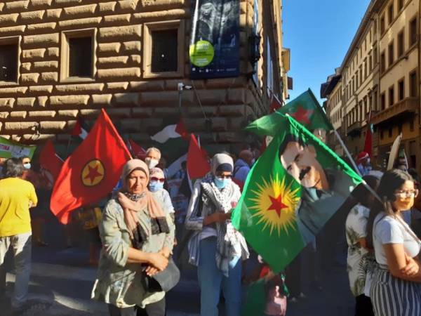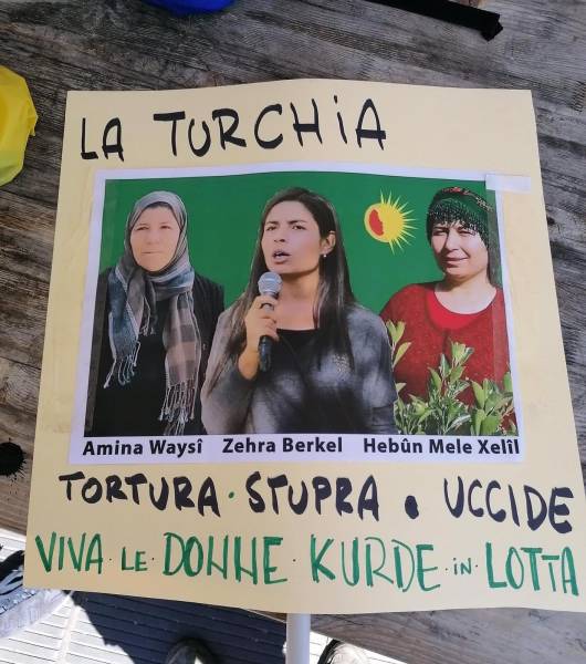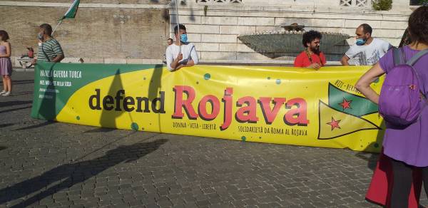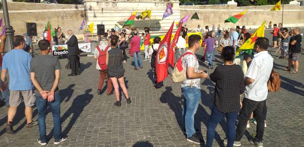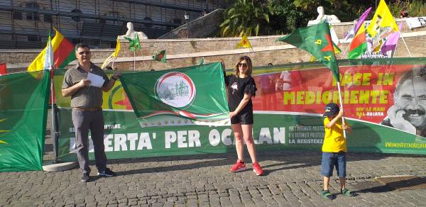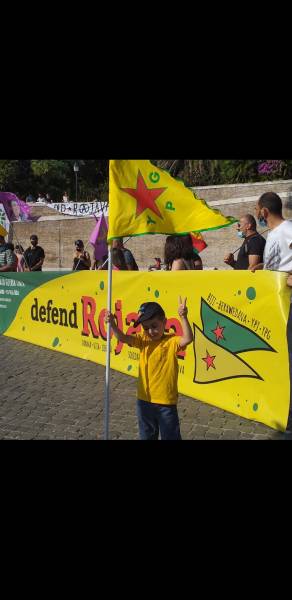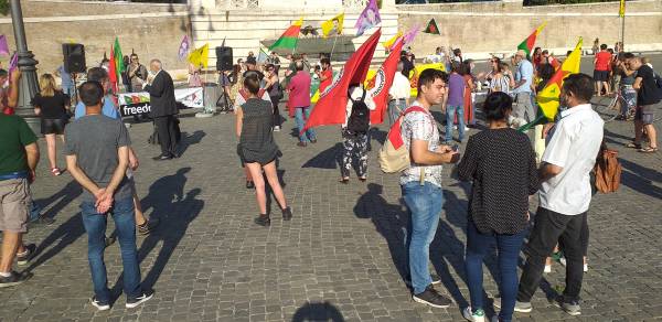 Kurd û dostên wan ên Îtalyayî li dijî êrişên dagirkeriyê yên dewleta Tirk dagirker daketin qadan.