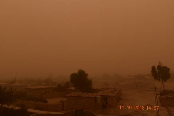 Li herêma Mexmûr a bi ser bajarê Mûsil ê Iraqê ve di derdorî saet 15:00’an de bahozekî mezin a tozê rabû.
