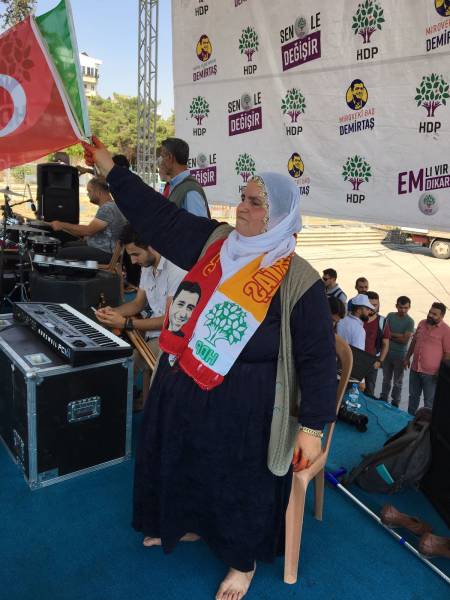 Êrîşên li ser HDP’ê her roja diçe zêde dibe. Êrîşî standên me dikin, hevalên me destgîr dikin. Wisa dikin ku em ê dev jê berdin. Ma me kengê dev jê berdaye. Qet dev jê berandin. Çi bikin bila bikin em nayên lîstikên wan. Em ê xwedî li dengê xwe derbikevin. Em ê bi hev re vê lîstikê têk bibin.