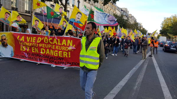 Meşa ku Kurdistanî û dostên wan tevlî bû, jinana pankarta bi nivîsa ‘Jiyana Rêberê Gelê Kurd Abdullah Ocalan di xeteriyê de ye, berpirs komploger û yên girtine ye’ vekirin. Di tevahî meşê de dirûşmên ‘Ji Ocalan re azadî’ û ‘Dîktagor Erdogan’ hate qîrkirin û belavok hatin belavkirin.