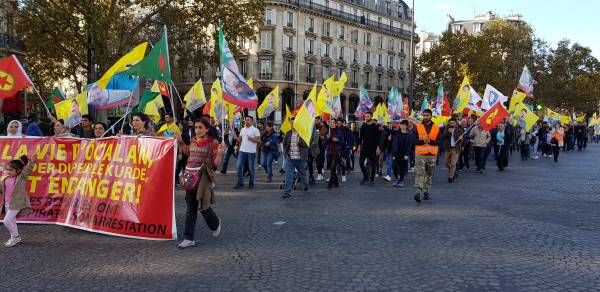 Li ser banga Tevgera Jinên Kurd a Fransa (TJK-F) û Koneya Kurd a Demokratîk a Fransa (CDK-F) li Qada Repûbîqûe saet 17:00’an meşek hate kirin.