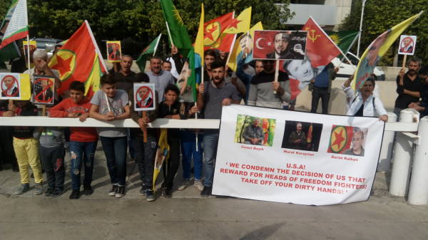 Kurdan li paytexta Qibrisê Nîcosîayê bi çalakiyekê biryara DYA'yê ya li ser qedroyên pêşeng ên PKK'ê Murat Karayilan, Cemîl Bayik û Duran Kalkan, şermezar kirin.