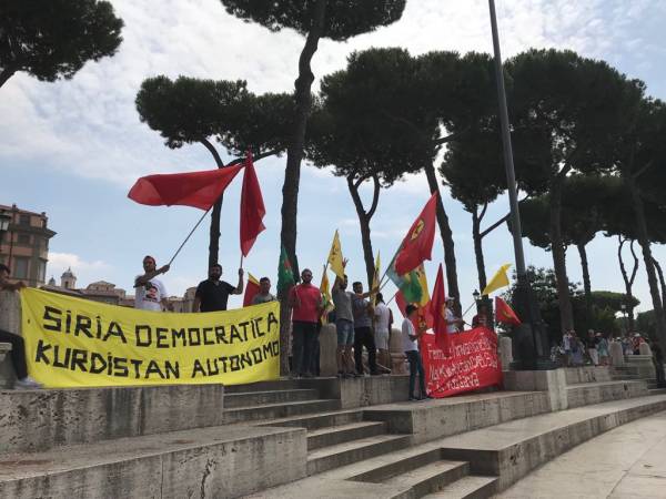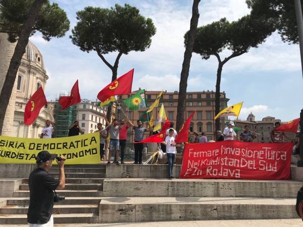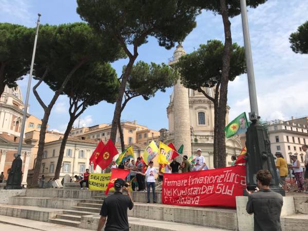 Êrîşên qirkirin û dagirkeriyê yên dewleta Tirk li dijî Rojava û Başûrê Kurdistanê dayî destpêkirin, li paytexta Îtalya Romayê bi çalakiyekê hate protestokirin.