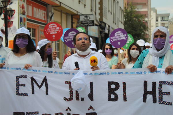 Li vir Hevserokê KCD'ê Bedra Ozturk axivî û got, ''Hemû gelên Tirkiyê li dijî şer divê aştiyê, li djî tecrîdê divê azadiyê biparêzin.''