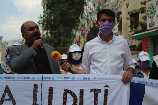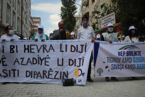 Şûbeya Amedê ya Komeleya Mafê Mirovan (ÎHD), Baroya Amedê, Nûnertiya Amedê ya Weqa Mafê Mirovan a Tirkiyê (TÎHV), Nûnertiya Insîyatîva Heqan û Odeya Bijîşkan li avahiya ÎHD'ê daxuyaniya çapemeniyê dan. Daxuyaniya hevpar ji hêla Serokê Şûbeya ÎHD'ê Abdullah Zeytûn ve hate xwendin. Zeytûn got ji ber çaresernekirina meseleya Kurd ev 36 sal in şerê çekdarî didome, rewşa şer bandora xwe li ser hemû Tirkiyê kiriye, pirsgirêka demokrasiyê û mafê mirovan giran kiriye.