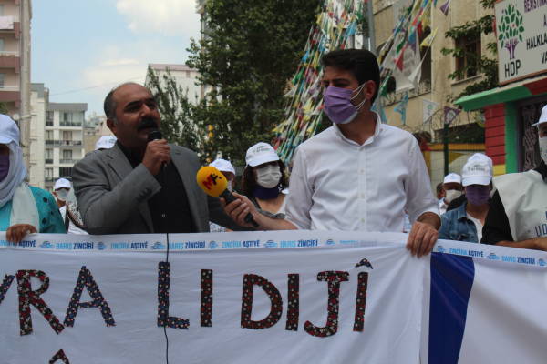 HDP'ê xwest ku çalakiya 'zincîra aştiyê' li Parka Newrozê bike lê polîsên Tirk nehişt ku vê bike. Li ser vê gel li ber avahiya HDP'ê hate cem hev. Li vir jî polîsan avahiya HDP'ê dorpêç kiribû lê li gel vê jî gel dorpêça polîsan şikand û xwe gihande avahiya partiyê.