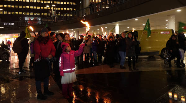 Şervan û sivîlên ji ber êrişên dagirkeriyê yên dewleta Tirk jiyana xwe ji dest dan li paytexta Swêd Stockholmê bi find û meşaleyan hatin bîranîn.