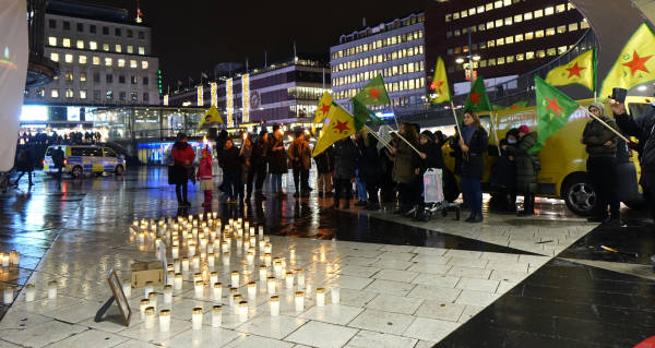 Kurdistanî tevî dostên xwe li paytexta Swêd Stockholmê li qada Sergelstorgê li hev kom bûn û şervanên azadiyê û sivîlên ku ji ber êrişên dagirkeriyê yên dewleta Tirk ên li Rojava jiyana xwe ji dest dan bi bîr anîn.