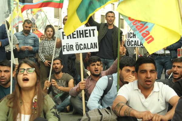 Meş ji Theodorskîrchplatzê destpêkir. Di meşê de pankarta bi zimanê Elmanî ‘Ji Ocalan re Azadî’, ‘Tecrîd wê bê şkandin’ hatin rakirin û bê navber dirûşmeyên ‘Ji Ocalan re azadî, ‘PKK Tohildan’ û ‘Bijî Serok Apo’ hatin berz kirin.