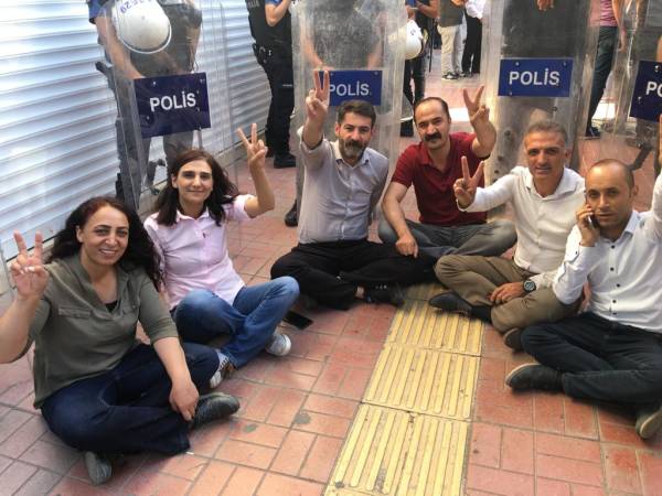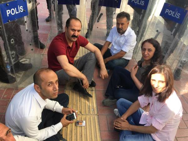 Polîsan dor li wekîlan girt. Di nava kesên hatine destgîrkirin şêwirmendê wekîlê HDP’ê Mûrat Sarisaç Îbrahîm Genç, Hasan Guven, Seyît Kiliç, Serokê EMEP yê bajêr û endamê Meclîsa şaredariya Rêya Armûşê Hayrettîn û kesekî li ser rê dema dimeşiya jî di nav de herî kêm 7 kes hatin destgîrkirin.