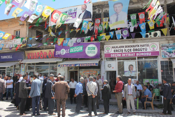 Namzetê HDP’ê yê Wanê Mûrta Sarisaç û heyeta pêre li navçeya Elbakê serdana dikandaran kir û cejna wan pîroz kir. Rêxistina HDP’ê ya Elbakê di çarçoveya xebatên hilbijartinê de xebatên xwe li taxên Hozî, Çadixan domandin. Gel eleqeyek mezin nîşanî HDP’yiyan da.