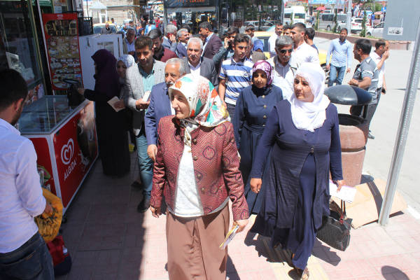 Li navçeya Seray a Wanê namzeta HDP’ê Asûman Yelmazer û parlamenterê berê Nazmî Gur xebatên hilbijartinê bi rêve bir. Serokê Şaredariyê Mehmet Garîp Aykût ê ku li cihê wî qeyûm hatibû tayinkirin beşdarî partiyan bû, li taxan geriyan û qala girîngiya hilbijartinên 24’ê Hezîranê kir. Destpêkê endamên partiyê li navenda navçeyê serdana hinek malbatan kirin.