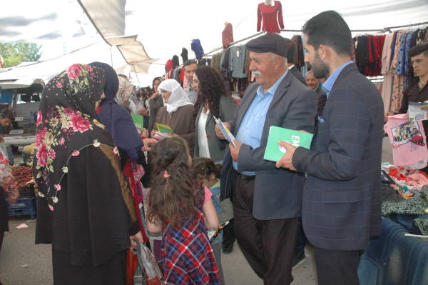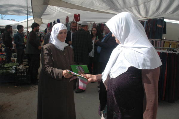 Jin eleqeyeke mezin nîşanî xebatên hilbijartinê yên li navenda wanê û navçeyên wê dide. Namzetên HDP’ê yên ku her cihê diçeyê bi coşek mezin tên pêşwazîkirin, bi gel re daxivin û nêrînên gel digirin.