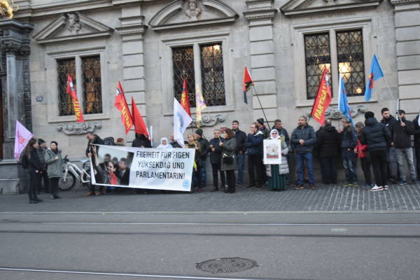 Li pêşiya Parlementoya Kantona Zurîhê li ser banga CDK, ÎTÎF, Atîk, Esû, Kolektîfa Kizil a Mor, Dayikên Aştiyê, Eniya Şoreşger, Meclîsa Jinan a Bêrîtan, PYD, Saziyên ÎDAF, Federasyona Karkerên Koçber ên Swîsreyê (ÎGÎF) mîtîngek hate kirin.