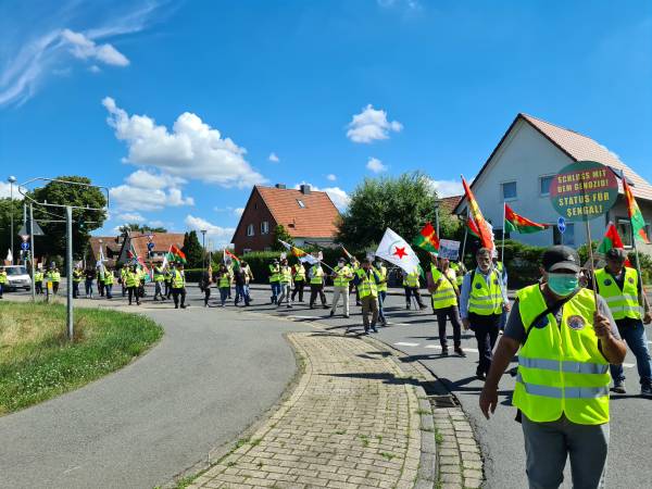 Meşa du rojan a navbera bajarên Celle û Hannoverê yên Elmanyayê bi dirûşma "Na ji qirkirine re, statu ji Şengalê re" dest pê kir.