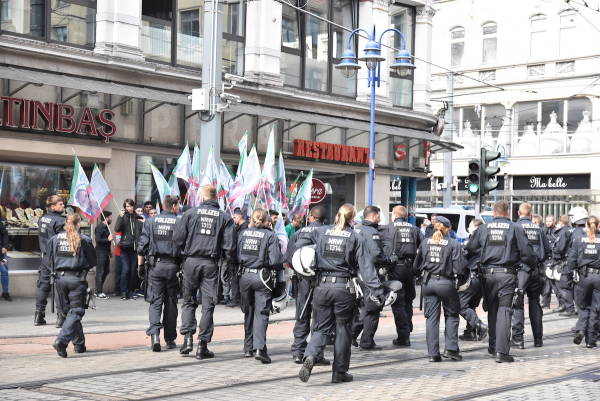Polîsan hewl dan biavêjin ser Komeleya Çanda Kurdan a Dûîsbûrgê û ciwanan jî bi helwesta "destûra we nîne" li pêşiya serdegirtinê bûn asteng. Piştre meşê ji nû ve dest pê kir.