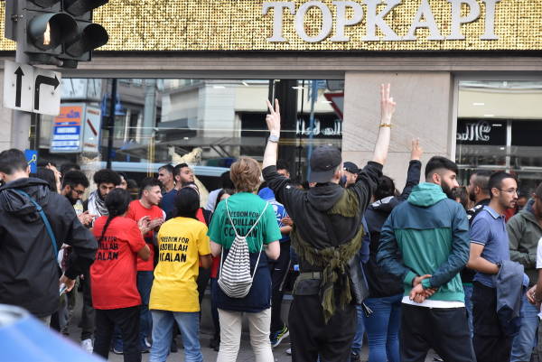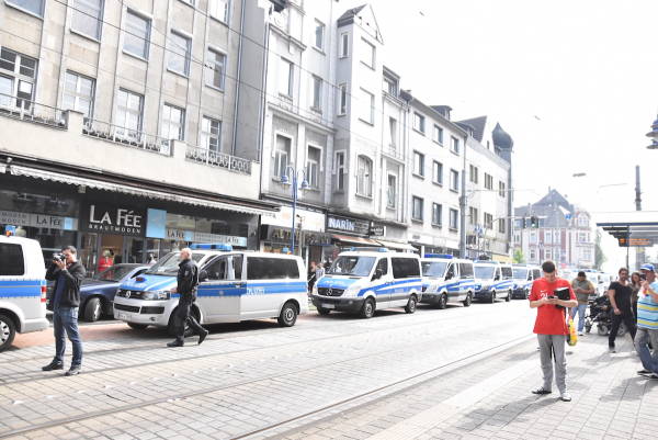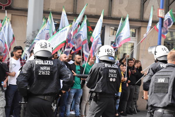 Ciwanên ku al û tîşortên ji wêneyên Ocalan li xwe kirin, bi qîrîna dirûşm û sirûdan dest bi meşê kirin. Li nava kolanên Dûîsbûrgê jî polîsan dor li ciwanan girtin.