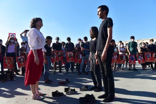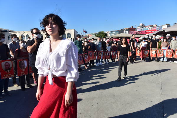 Rêxistinên ciwanan di salvegera 5’emîn a Qetlîama Sûrûcê de bi şîara ‘Edalet ji bo Sûrûcê, ji bo hemû kesan edalet’ li Kadikoyê zincîra edaletê çêkirin.