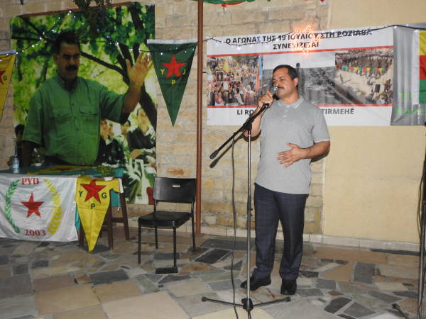 Nûnerê PYD'ê yê Qibrisê Yasîn Tarbouch destpêkê axivî û diyar kir, Şoreşa Rojava ku li Rojhilata Navîn stêrkeke bi şewq e, hîn jî didome. Tarbouch diyar kir ku dewleta Tirk a faşîst wê têk biçe.