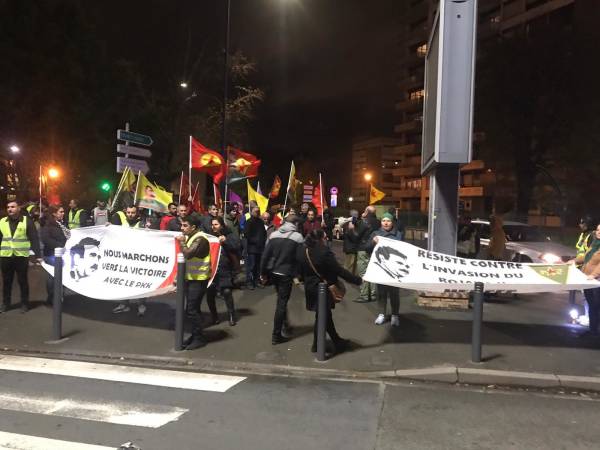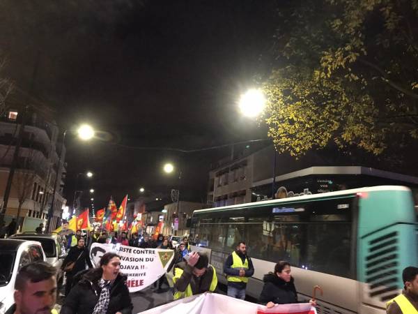 Li banliyoya Evry jî ciwan û Kurdistanî li Navenda Civaka Demokratîk a Kurd li hev kom bûn û bi ala PKK'ê û pankarta "Di sala 41'ê de bi ruhê Şoreşa Rojava em ber bi serketinê ve diçin" meşiyan.