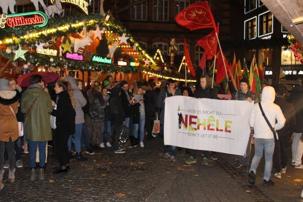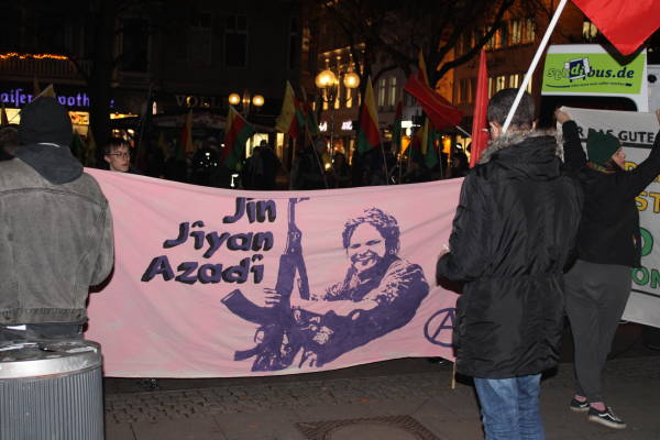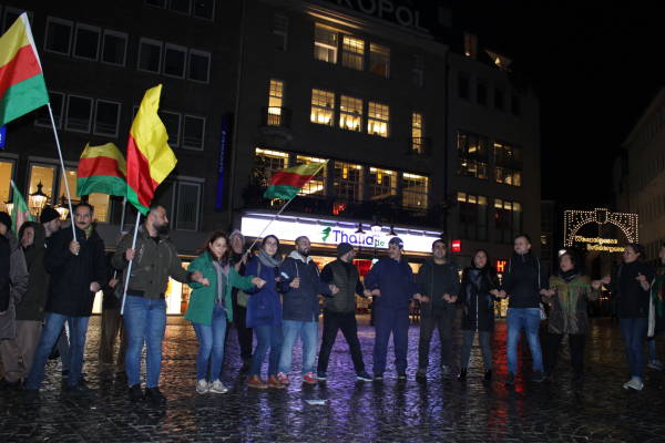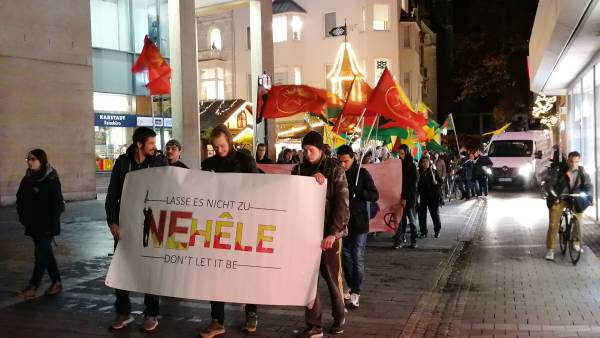 Di çalakiyê de dirûşmên "PKK" û "Her dever Rojava ye, her dever berxwedan e" hatin qîrîn.