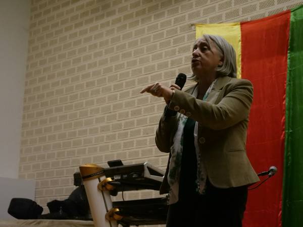 Siyasetmedar Nûrsel Aydogan di şevê de axivî û ragihand, ku Kurdan li Rojava serketinên mezin bi dest xistin û got, "Xwerêveberî ragihandin. Hêz û serketina Kurdan ji aliyê dinyayê ve hate dîtin. Lê belê niha her kes kiryarên Tirkiyeyê dibîne. Ji bo serketina Kurdan asteng bike çi jê tê dike. Êrişên li dijî Rojava, desteserkirina şaredariyên Kurdan ji bo em dest ji her tiştî berdin tên kirin.