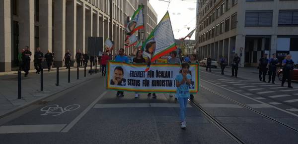 Li dû deqeyeke rêzgirtinê ji bo bîranîna şehîdên şoreşa Kurdistanê bi zimanên Elmanî û Kurdî axaftin hate kirin û hate xwestin ku dawî li tecrîda li ser Ocalan bê anîn.
