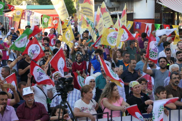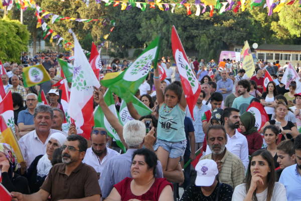 Bersîva kesên ku dibêjin "Pirsgirêka Kurd tune" niha di vê kêliyê de gelê Amedê li Qada Îstasyonê dide. Em bi rêxistinên demokrasîks saziyên civakî û hemû reng û nasnameyên civakê re dikarin hemû pirsgirêkan çareser bikin. Ji bo vê yekê divê em piştî 24'ê Hezîranê destê xwe bidin hev. An em wê demokrasiyê hilbijêrin. An em wê demokrasiyê hilbijêrin. Eger ku em demokrasiyê hilbijêrin wê demê divê em bi hev re destê xwe bidin hev û bi hev re pirsgirêkan çareser bikin.