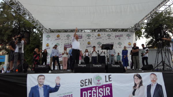 Rêxistina HDP'ê ya Hatayê di çarçoveya hilbijartina 24'ê Hezîranê de li Hatayê mîtîng pêk anî. Di mîtingê de Hevserokê Giştî yê HDP'ê Sezaî Temellî axivî û hikûmeta AKP'ê da ber rexneyan. Temellî, xwest piştî 24'ê Hezîranê bi hev re bingeha demokrasiyê bavêjin û ji bo vê yekê jî berî her tiştî bi herve Makeqanûna Bingehîn a demokratîk ava bikin.