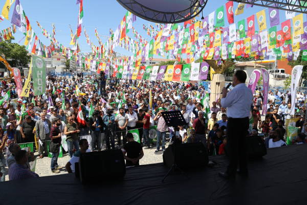 Li bin bendêmayîna HDP’ê tê wateya li bin bendêmayîna Tirkiyeyê. Li bin bendêmayîna HDP’ê tê wateya li bin bendêmayîna demokrasî, siberojê. Divê ev bend bê hilweşandin. Em ê bi hev re vê bendê hilweşînin. Em ê biteqez bi serkevin.”