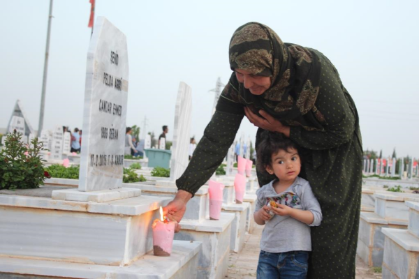 Endamên Meclîsa Malbatên Şehîdan, endamên saziyên sivîl û welatiyan li ser gora şehîdan find vêxistin û dua xwendin. Li goristanê ji bo giyanê şehîdan deqîqeyek rêz hate girtin.