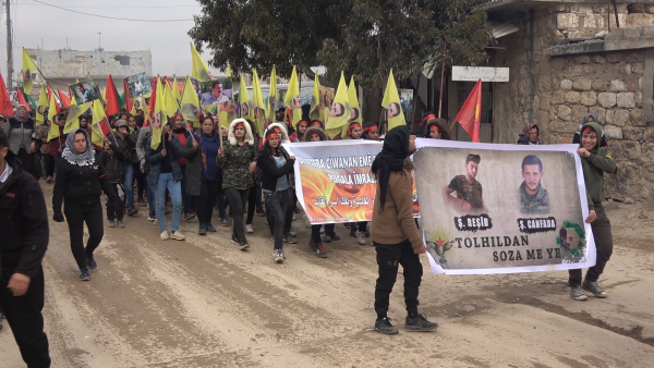 Ji ber salvegera 21'ê ya komploya navneteweyî ya 15'ê Sibatê ku li dijî Rêberê Gelê Kurd Abdullah Ocalan hate kirin, ciwanên herêma Efrîn û Şehbayê meşek li dar xistin.