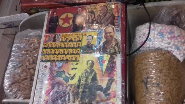 Dema em di ber dikana wî re derbas dibin, goşekeke dikana wî ku wêneyên Rêberê Gelê Kurd Abdullah Ocalan, endamê Komîteya Rêveber a PKK'ê Mûrat Karayilan û şehîdên PKK û YPG'ê lê ne, bala min dikişîne. Piştî ku me silav dan hev, qala wêneyên ku mala min dikişîne dike. Dibêje, gerîlaya jin a di wêne de xuya dike, xwişka wî ye û di sala 1994'an de li Rihayê di zîndana Tirkan de şehîd bûye.