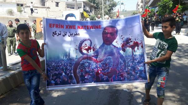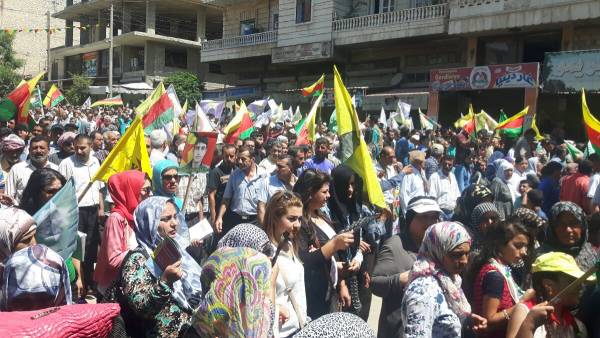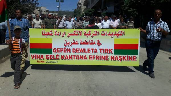 Gelê Efrînê, li dijî tecrîda giran a li ser Rêberê Gelê Kurd Abdullah Ocalan û êrîşên dagirkeriyê yên dewleta Tirk ên li ser Efrîn û herêma Şehbayê meşiya.