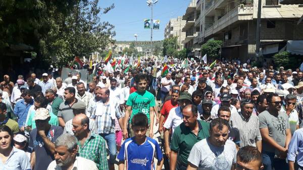 Bi deh hezaran welatiyên Efrînê li dijî tecrîda giran a li ser Rêberê Gelê Kurd Abdullah Ocalan û êrîşên dagirkeriyê yên dewleta Tirk ên li ser Efrîn û herêma Şehbayê daketin kolanan. Welatî ji bo tevlî meşê bibin, dikanên xwe, atolye, kargeh û sazî girtin.
