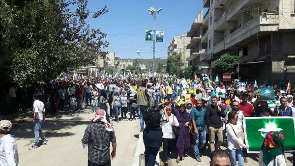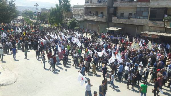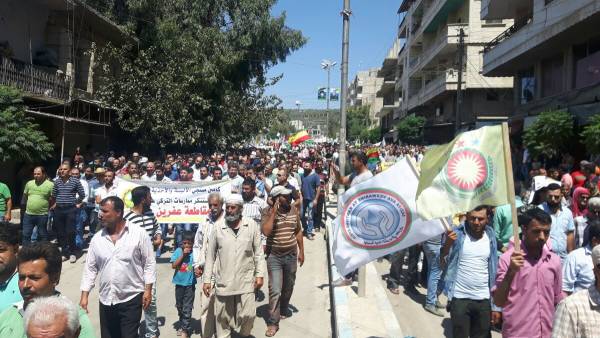 Gelê Efrînê li dijî tecrîdê û êrîşên dagirkeriyê meşiya
