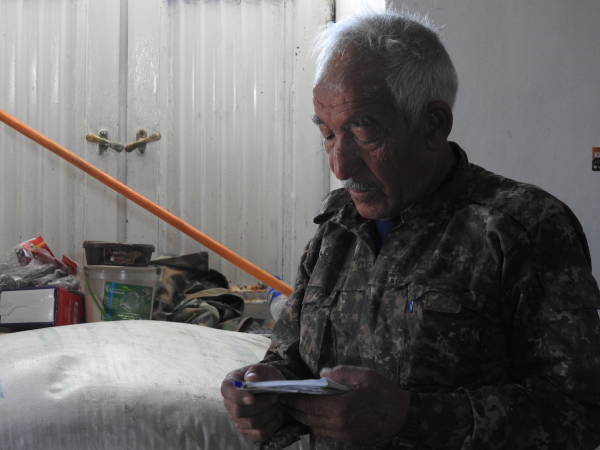 Ji şervanê li kêleka xwe hîn dibim ku emrê î 63 salî ye. Şervanekî din jî qala Ebû Osman dike: "Ebû Osman ji destpêka şoreşê ve li eniyê ye. 3 zarokên wî hene. Niha li Serêkaniyê dijî, lê ji Kobanê ye. Her tim qala hatina Rêbertî ji bo Kobanê û destpêkirina şoreşê ji Kobanê dike. Bi vê serbilind e û dibêje 'Heta dawiya emrê xwe ez ê hêjayî Rêbertî bim'. Li ser vê yekê em piştî wî diçin cihê ku ew çû erzaqê bîne. Hez nake ji kamera re baxive. Timî dibeze, em jê dixwazin ku çend deqeyan ji bo me baxive. Ebû Osman di axaftina xwe de bersivên kin û zelal dide. Dibêje, 'Ji bo min cih ne girîng e. Ku der bê xwestin, ez ê biçim wir. Ev enî be, cihekî dibe. Ji bo min ne xem e'.