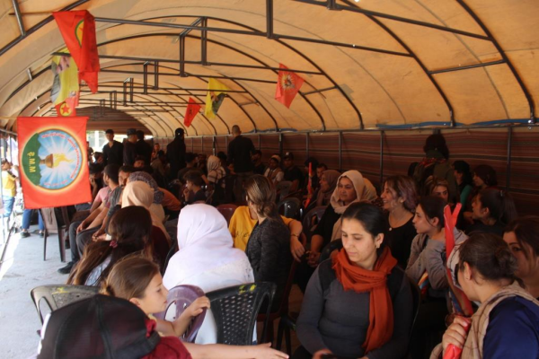 Endamê Tevgera Ciwanên Şoreşger Mezlûm Hemo, daxuyaniya bi zimanê Kurdî xwend. Hemo anî ziman ku ji bo piştevaniya bi gerîlayên azadiyê re wan dest bi çalakiya konvedanê kiriye û got: “Bi tevlêbûna hemû ciwanan em konê çalakiyê datînin, ji hemû ciwan û saziyên kon danîne re dibêjin hûn bi xêr hatine. Em ê timî piştgiriya gerîla bikin û em bang li tevahî ciwanên Rêber Apo dikin ku bila rabin ser pêyan."