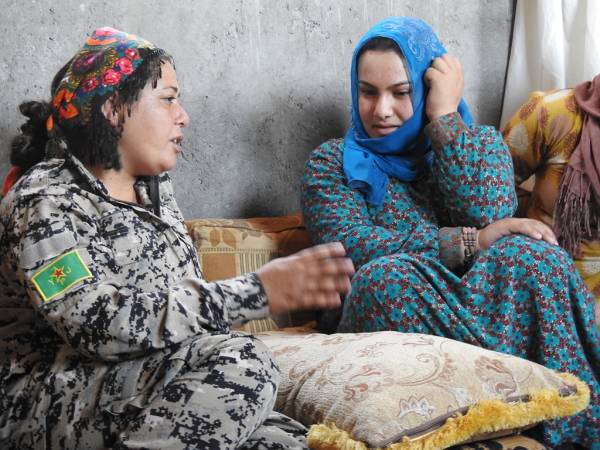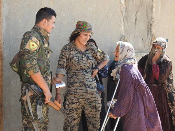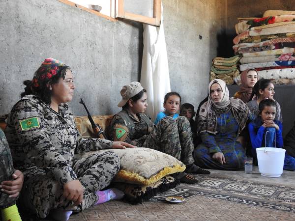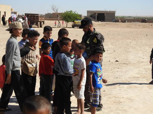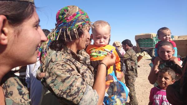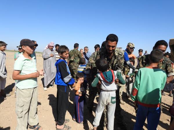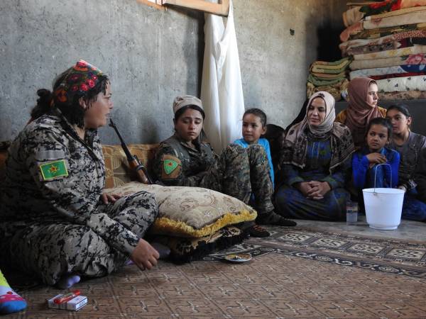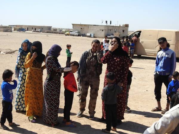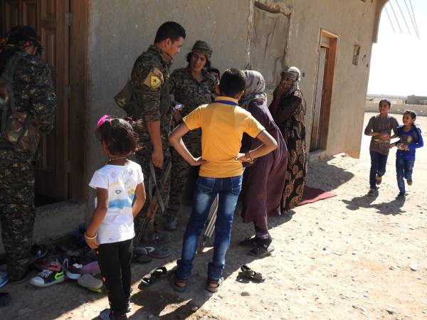 Şêniyên Reqayê, li konên lê ne şervanên QSD'ê vehewandin û şekirê cejnê dan wan. Di dema serdanê de, jin û zarokên ku rûyê herî qirêj ê hovîtiya DAIŞ'ê dîtin, li dora şervanan bûn.