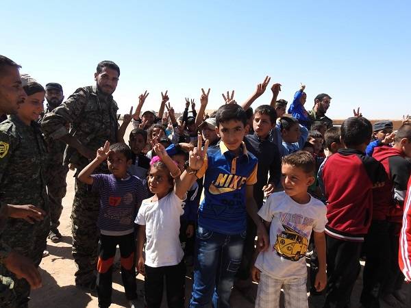 Bala welatiyên Reqayê li ser bajarê xwe ye, ku bi temamî were rizgarkirin. Şervanên QSD'ê danê vê sibehê bi wesîleya cejnê serdana wan kirin. Welatiyên Reqayê ji vê serdana şervanan gelekî kêfxweş bûn, ku ji kêfa hinekan rondik barandin.