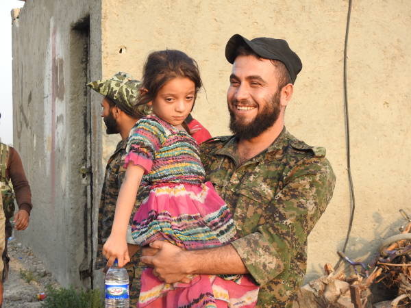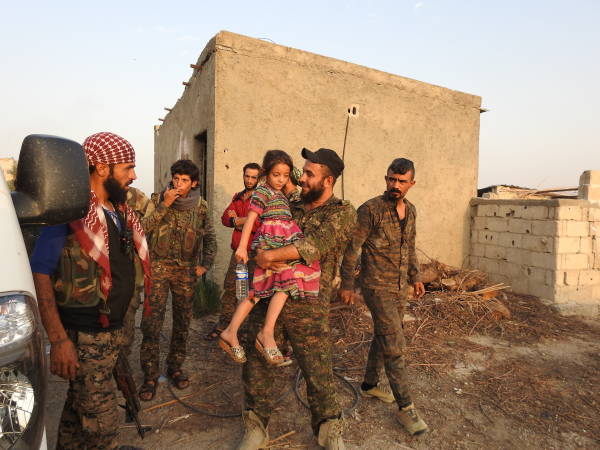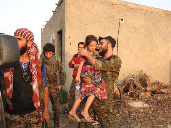 Welatiyekî ji Reqayê yê heftê salî got, "Çawa nêzî heywanan dibûn (DAIŞ) bi wî rengî nêzî me jî dibûn. Xwezê ji van ciwanên bedew (şervanên QSD'ê) razî be, hatin û em rizgar kirin." Extiyarê navborî wiha dewam kir: "Çeteyan nedihiştin kincê me dirêj be. Dema dirêj bû dibirîn. Dema riya me ne dirêj bûya, em davêtin zindanê. Nanê hişt ku nedibû mirov bide heywanan, didan me. Em çend malbat li kolanekê diman. Me alî hev dikir. Tiştekî me tine bû. DAIŞ'ê her 5-6 mehan carekê mîna ku henekê xwe bi me bike, pênc şeş hezar lîre dida me û digot ev zekat e. Kîsek bilxur dan me, piştre tiştek nedan. Piştî ku qediya, tiştekî em bixwin nema. Ez hê çi bêjim; ev Îslam nîne. Ne nimêjê dikin, ne jî îbadetê. Ji me re digotin her roj bên mizgeftê. Ew kafir in. Xwedê mezin e. Xwedê QSD ji me re şand. Van ciwanên bedew em ji zilmê rizgar kirin. Ciwanên QSD'ê gelekî qîmetê didin me. Xwarin dan me, av dan me. Gelekî rêz û hurmet nîşanî me dan. Ew jî mîna me tî, birçî dimînin, lê li dijî zilmê şer dikin. Xwedê ji wan razî be."